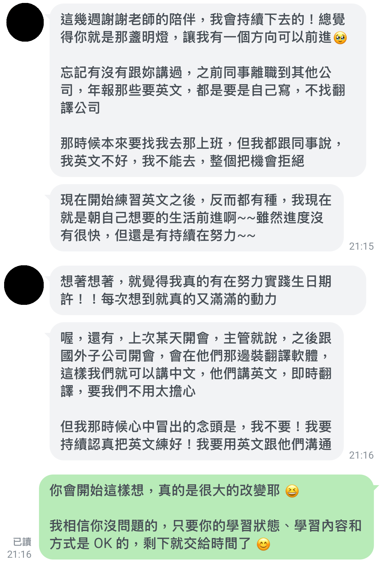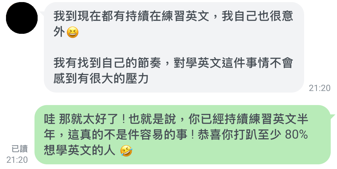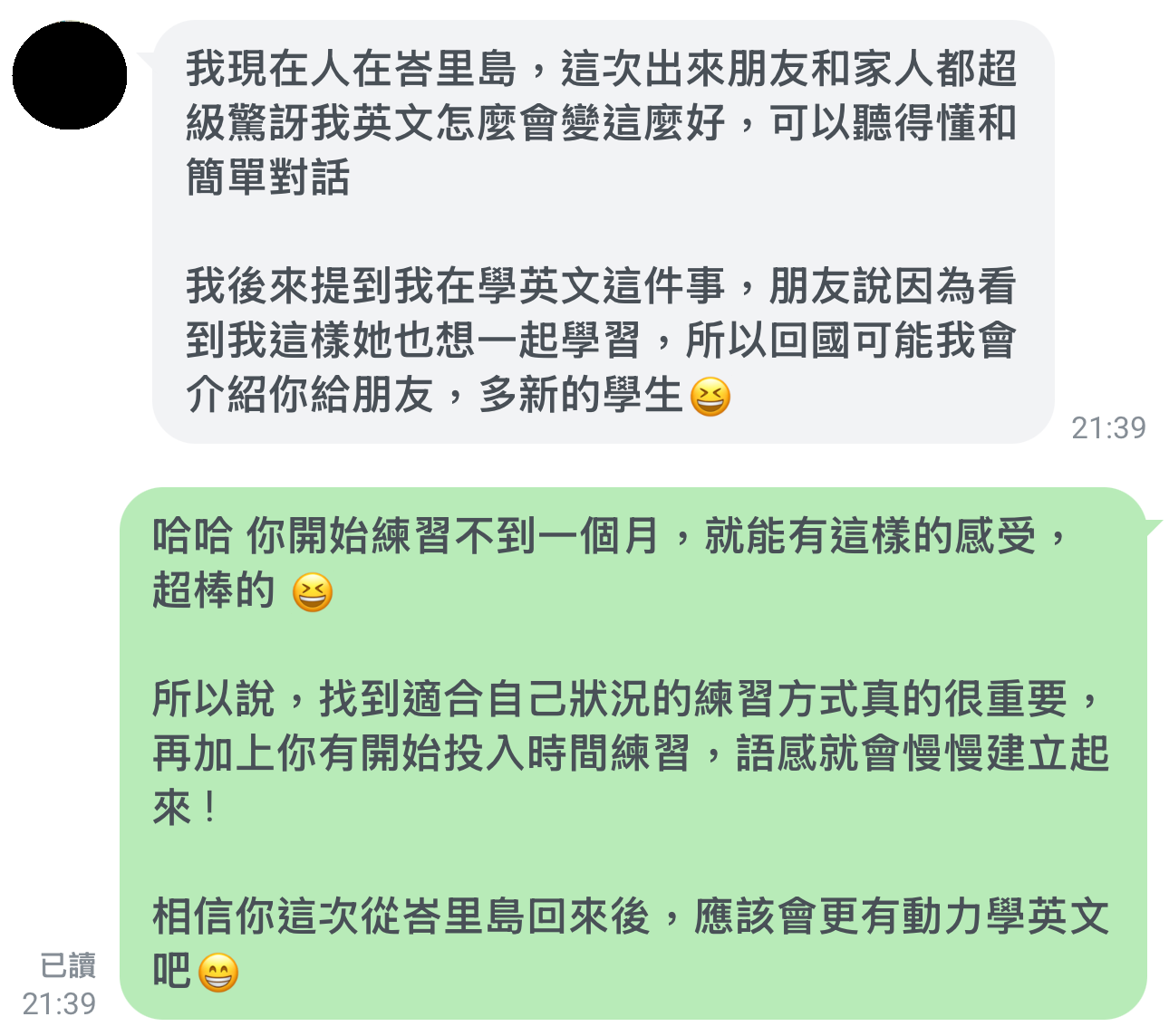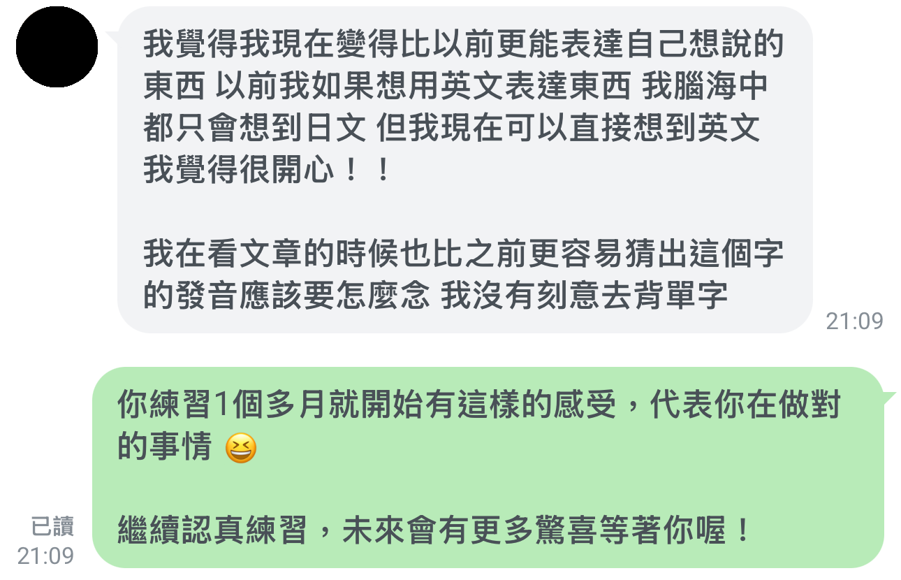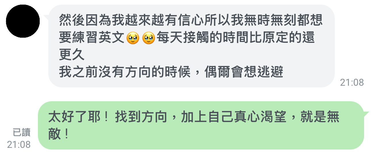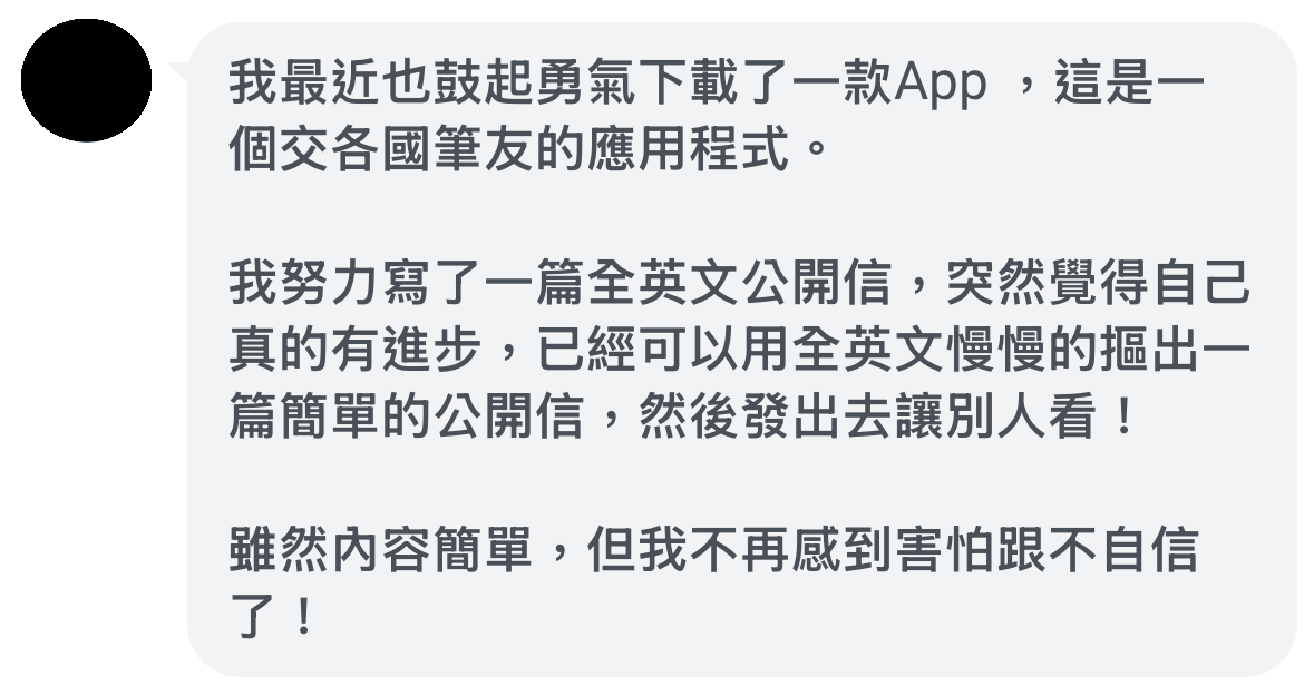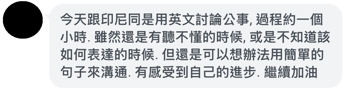 ● 個性內向很怕說英文的他,1 個月後竟能全英文聊天 2 小時!